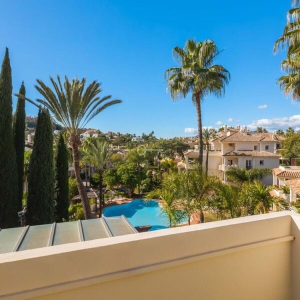 Ten wyjątkowy i znakomicie zaprojektowany dwupoziomowy penthouse od strony południowo-zachodniej oferuje oszałamiający panoramiczny widok na wielokrotnie nagradzane ogrody Las Alamandas w Nueva Andalucía, zapewniając idealną równowagę słońca i cienia na rozległych tarasach. Niedawno odnowiony zgodnie z najwyższymi współczesnymi standardami i wyposażony w najnowszą technologię automatyki domowej, ten niezwykły penthouse łączy prywatność, luksus, komfort i elegancję mieszkania w willi z dodatkowym prestiżem i atrakcyjnością mieszkania w jednej z najbardziej poszukiwanych lokalizacji Marbellas.