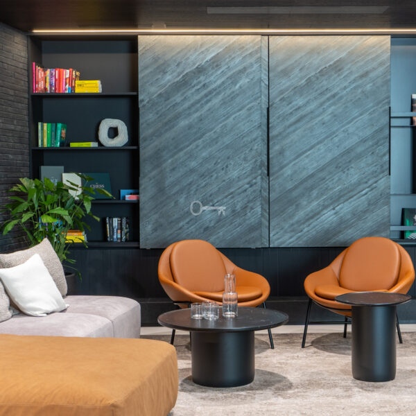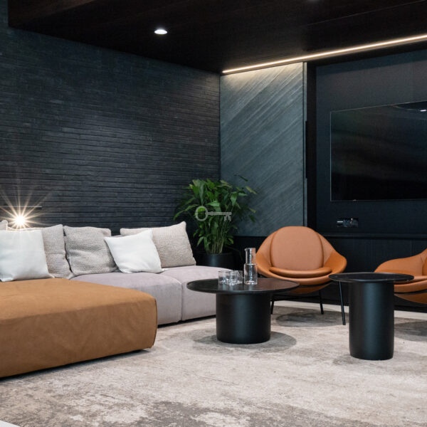 * Salonu z aneksem kuchennym (40,90 m2), który posiada wyjście przez przesuwne drzwi na balkon o powierzchni 6,62 m2, z którego rozpościera się widok na serce osiedla – zielone patio,