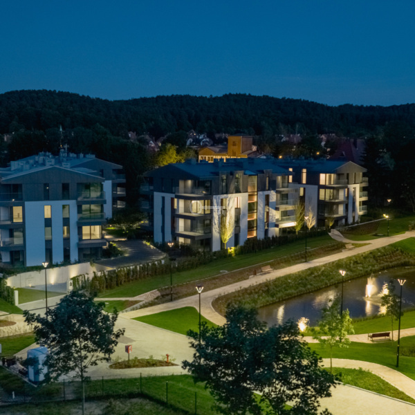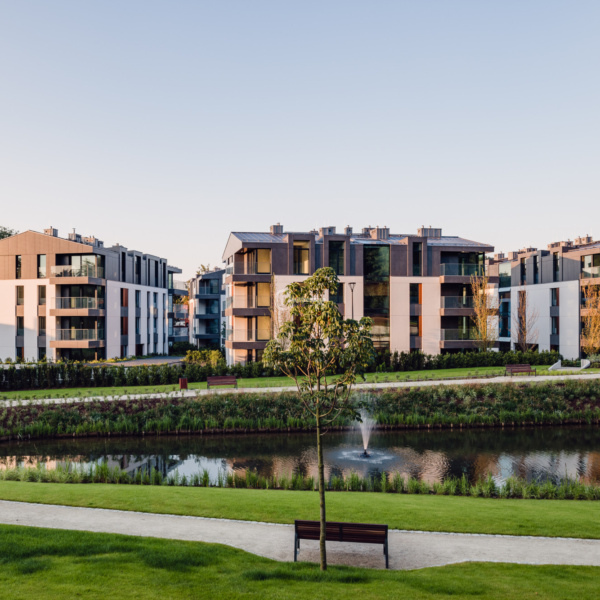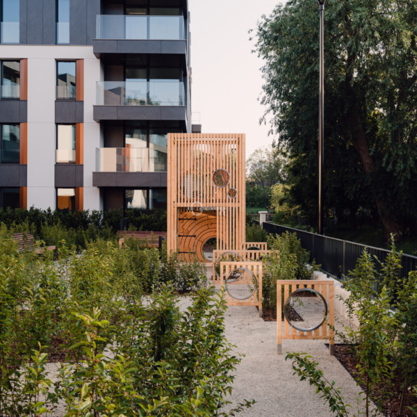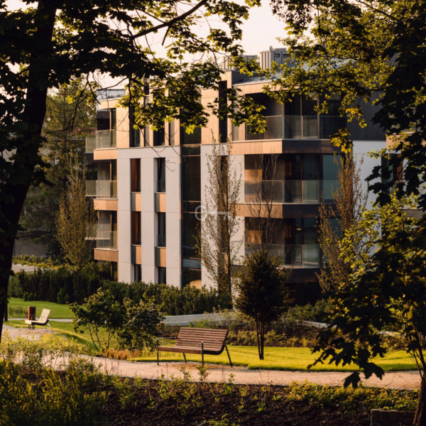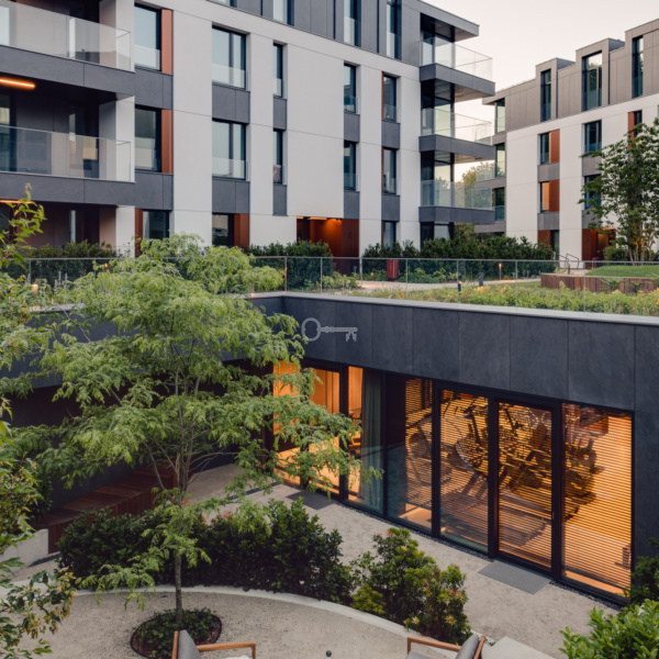 Wysokiej jakości materiały wykorzystane do inwestycji, takie jak kamień, miedź i drewno, współgrają z przestrzenią pełną przyrody, a z biegiem lat nabiorą coraz szlachetniejszego wyrazu. Pomiędzy budynkami została zaaranżowana przestrzeń dostępna wyłącznie dla mieszkańców. Znajdziemy tam m.in. oryginalny plac zabaw z labiryntem z krzewów oraz strefą rekreacyjną z saunami, spa oraz salą klubową otwartą na zielony taras.