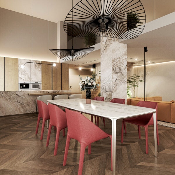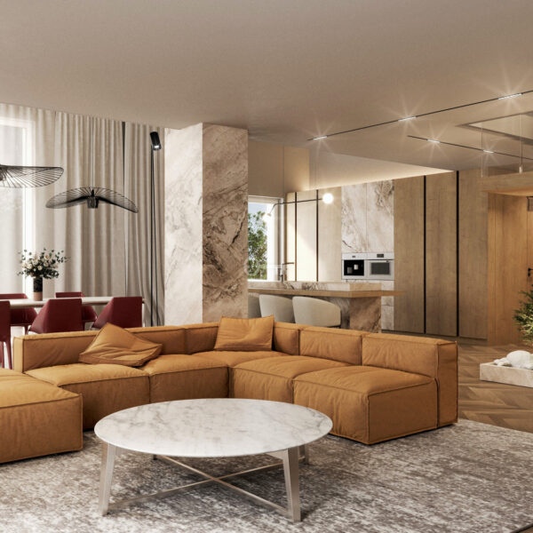 Apartament charakteryzuje się przemyślanym i funkcjonalnym układem pomieszczeń oraz przestronnymi wnętrzami. Reprezentacyjny salon z aneksem kuchennym, stanowi serce apartamentu, idealne do rodzinnych spotkań i towarzyskich wydarzeń. Ogródek z tarasami zaprasza do wypoczynku na świeżym powietrzu, oferując możliwość kreacji kameralnej strefy relaksu. Elastyczność aranżacji wnętrza (możliwość zmiany układu ścian działowych) pozwala na optymalne dopasowanie przestrzeni do indywidualnych potrzeb przyszłych właścicieli. Przedstawione w ofercie propozycje aranżacji mają charakter wizualizacji.