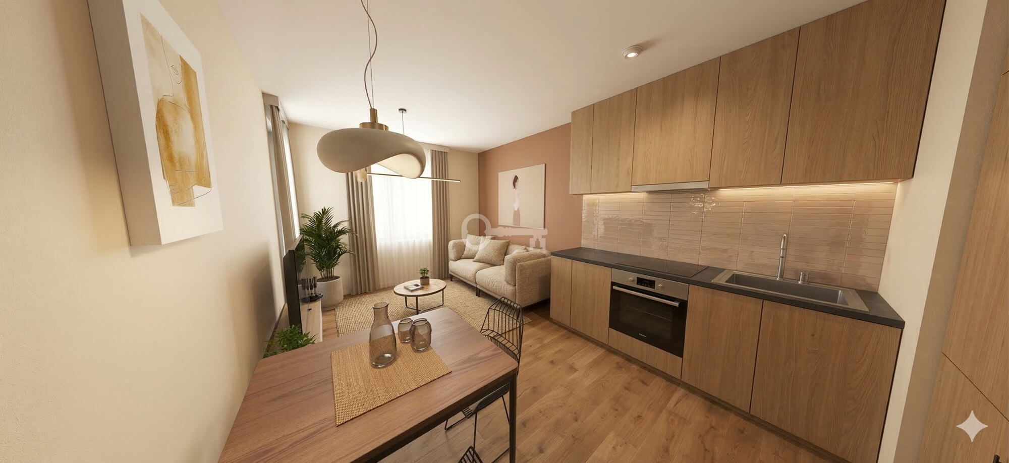 * Salon z aneksem kuchennym (16,75 m²): Przestronna i jasna strefa dzienna z bezpośrednim wyjściem na balkon,