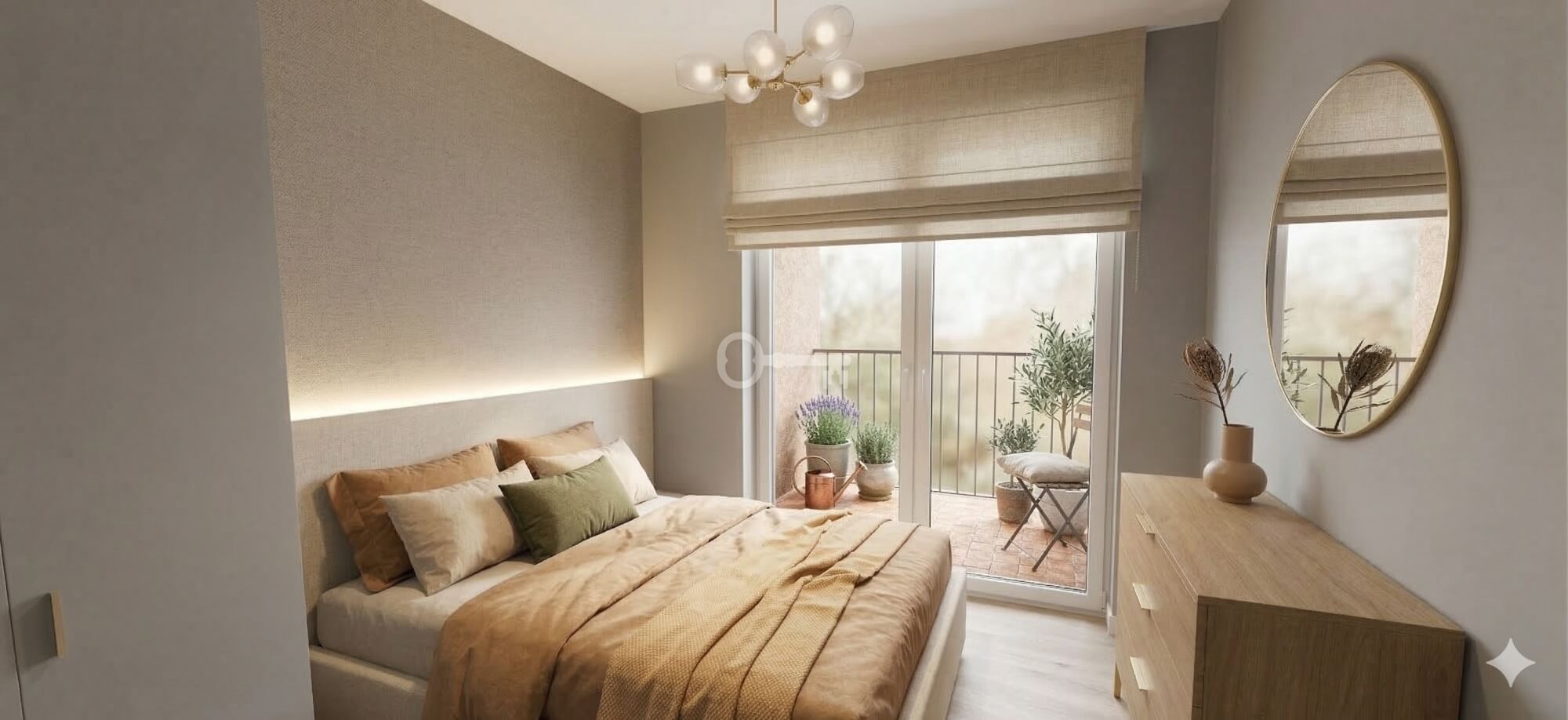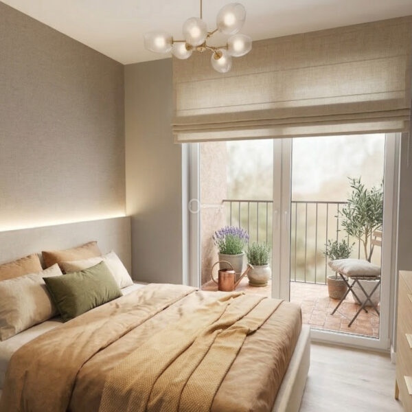 * sypialnia (9,05 m²): Jasny i funkcjonalny pokój z wyjściem na drugi balkon, idealny jako główna sypialnia,