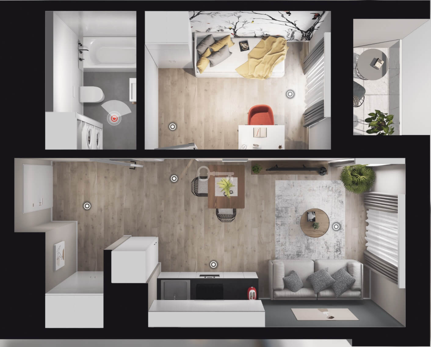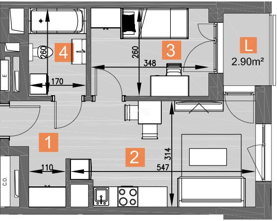 * balkony (2,90 m²): Dwie niezależne powierzchnie zewnętrzne, oferujące dodatkową przestrzeń do relaksu na świeżym powietrzu.
