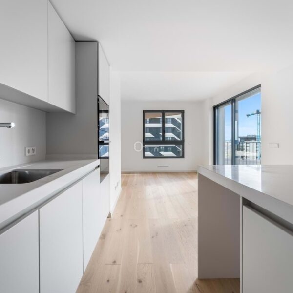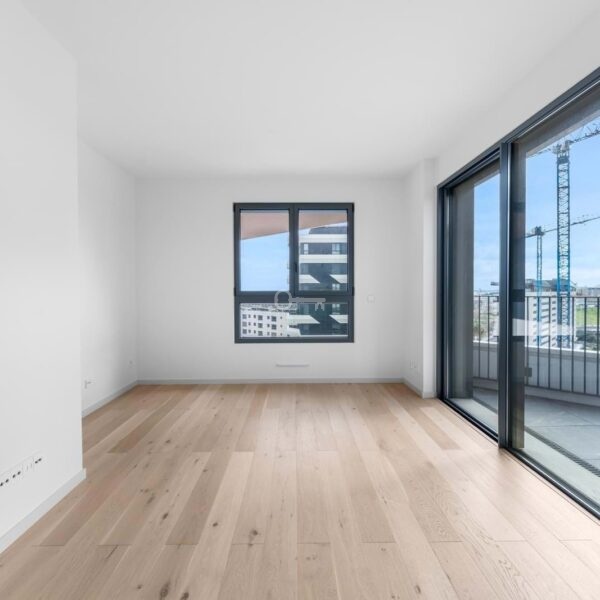 Apartament z 1 sypialnią, balkonem, komórką lokatorską i parkingiem w inwestycji Distrikt, zlokalizowanej w Parque das Nações w Lizbonie.