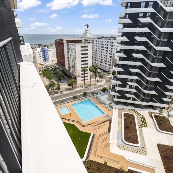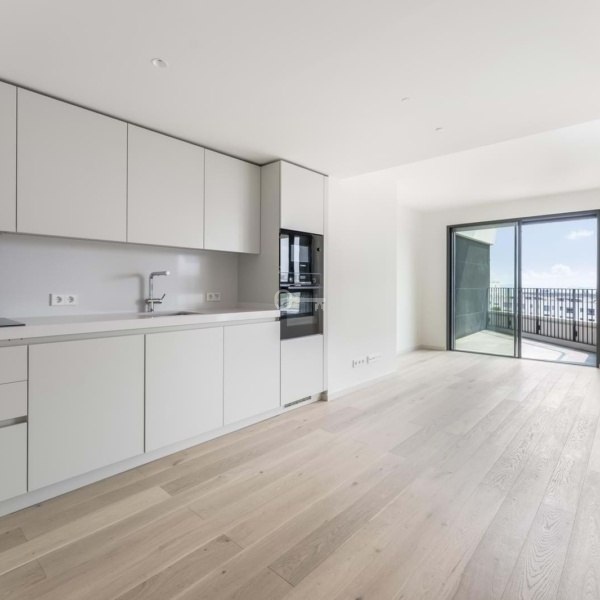 Apartament z 1 sypialnią, balkonem, komórką lokatorską i parkingiem w inwestycji Distrikt, zlokalizowanej w Parque das Nações w Lizbonie.