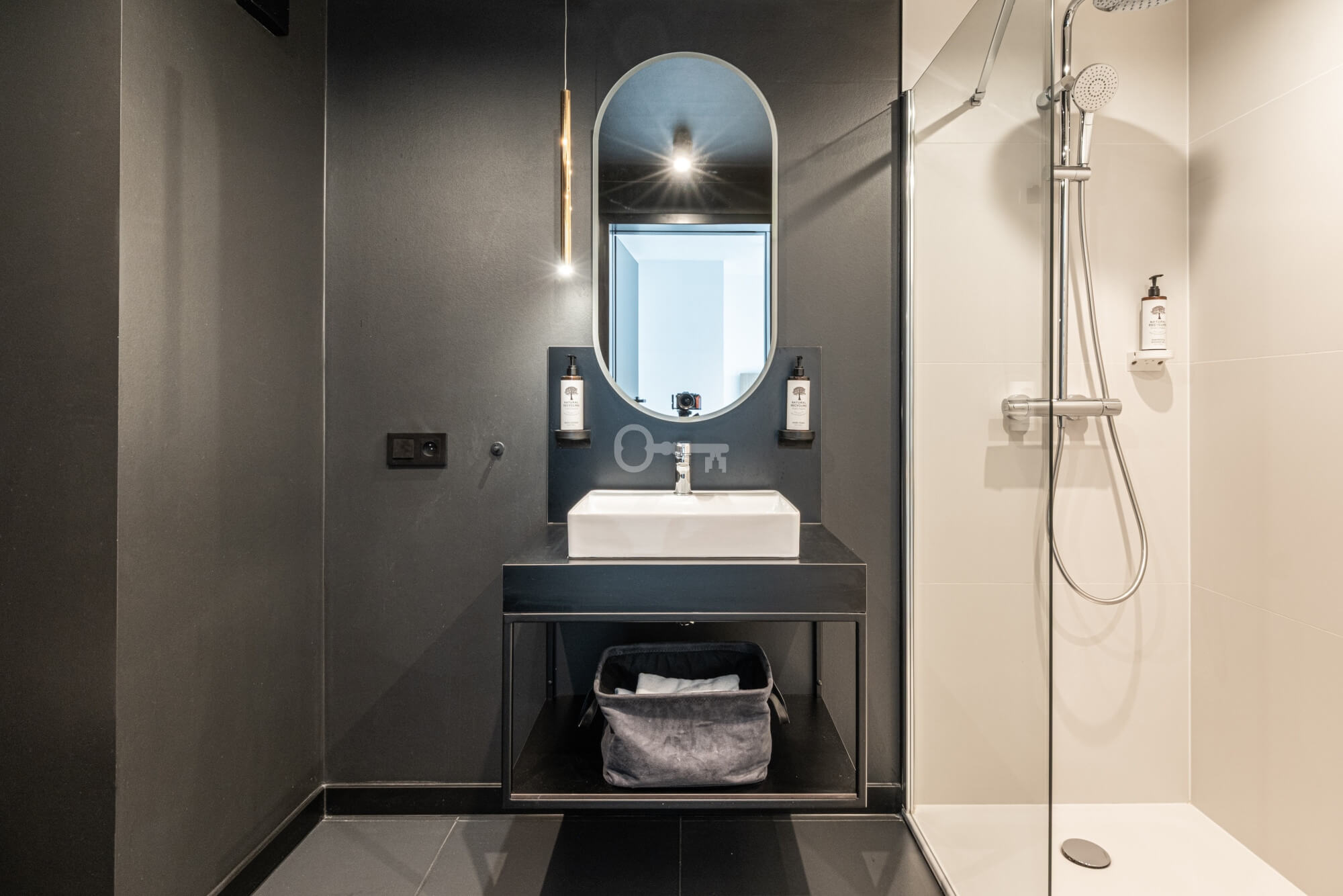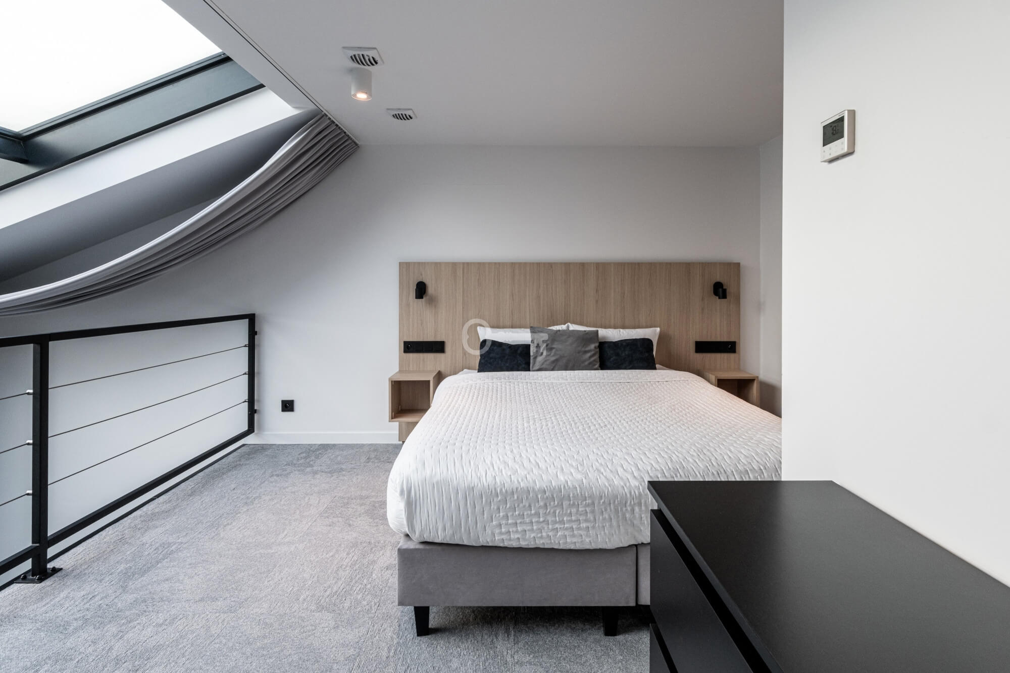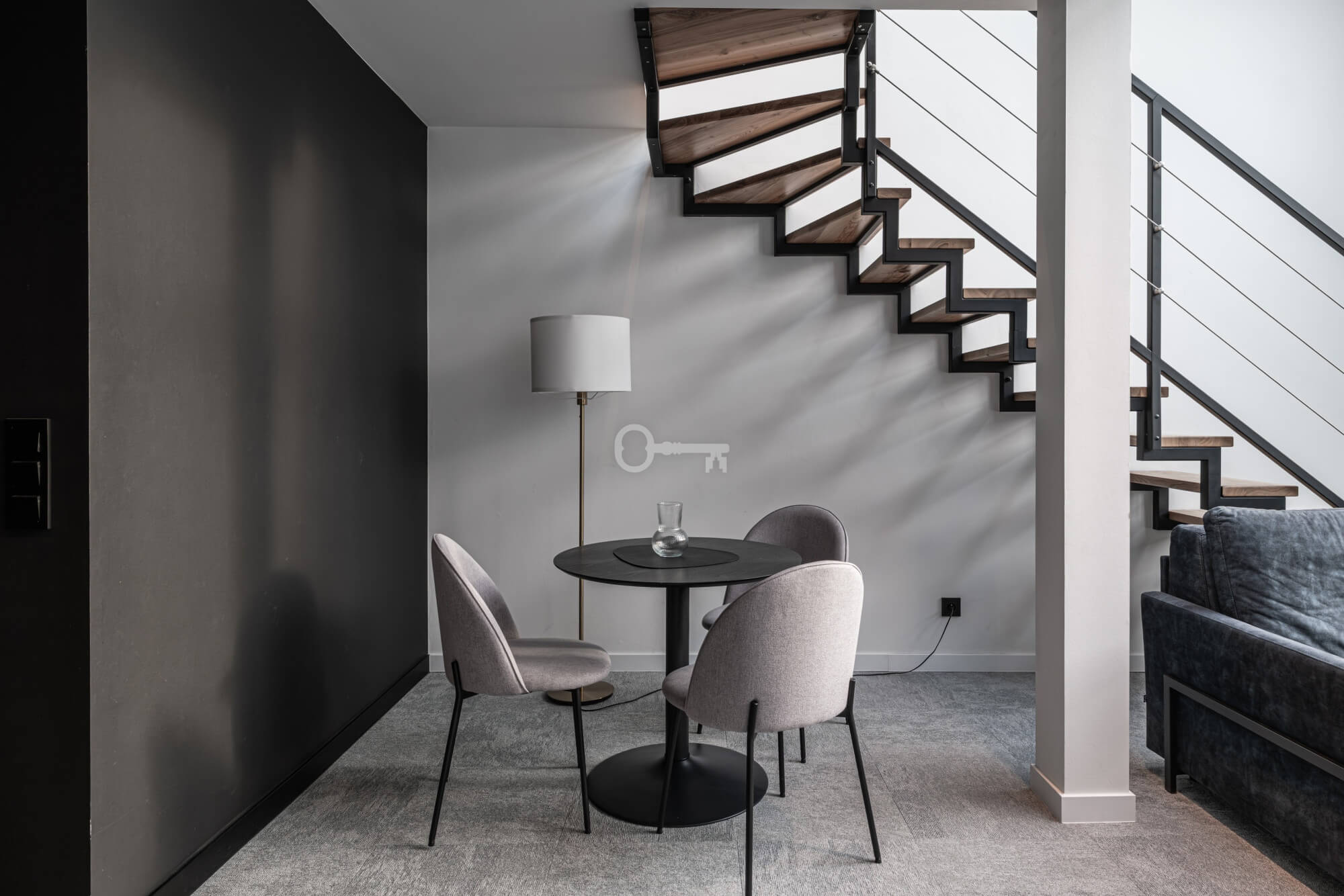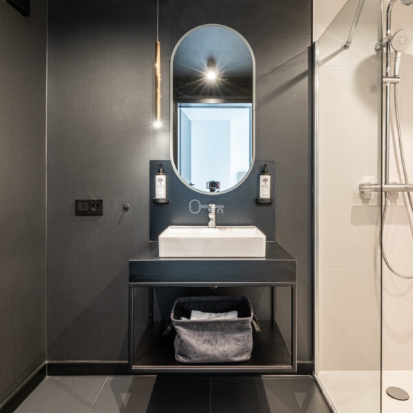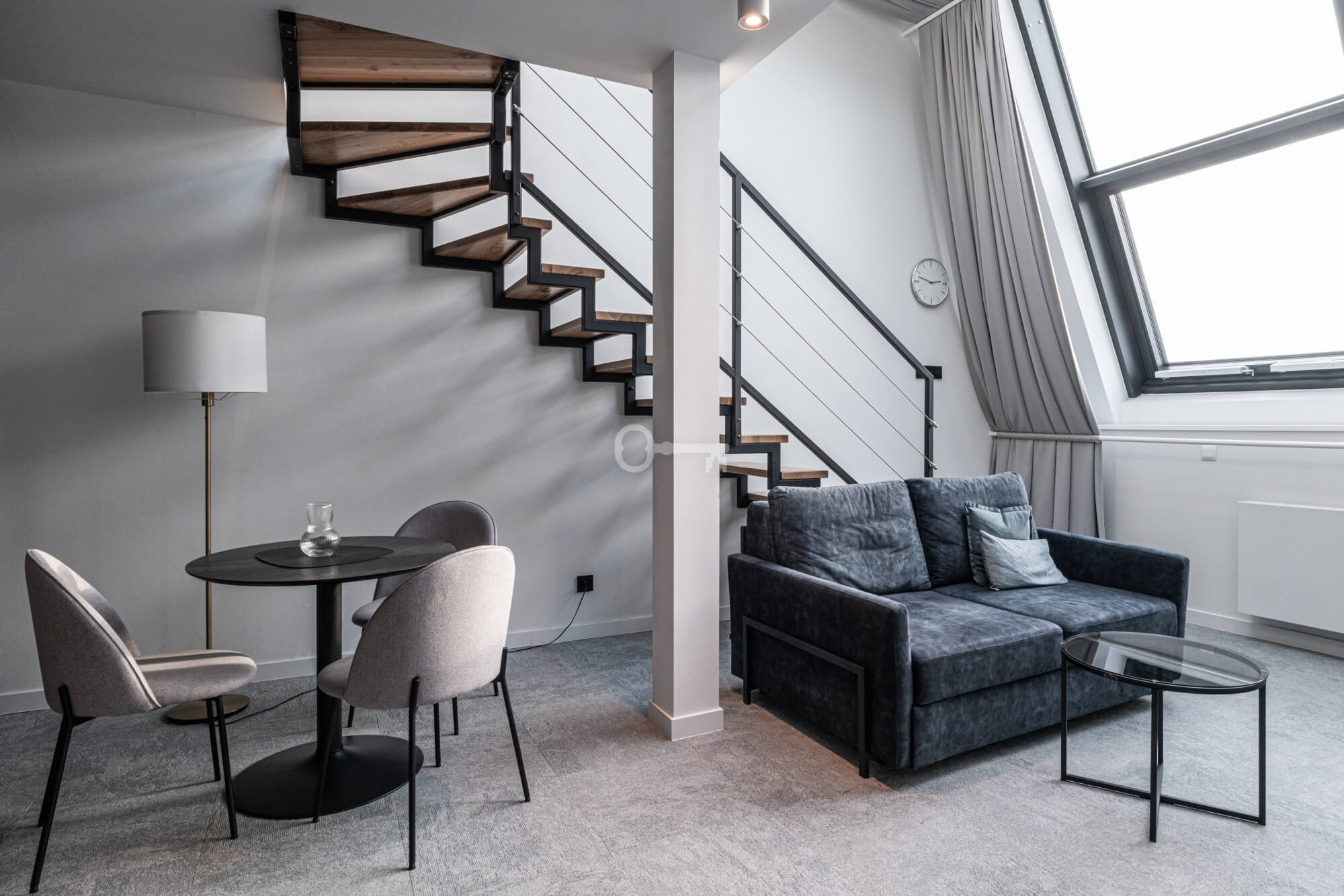 Prezentowany lokal to nowocześnie zaprojektowany, dwupoziomowy apartament z funkcjonalnym podziałem na strefę dzienną i nocną/wypoczynkową.