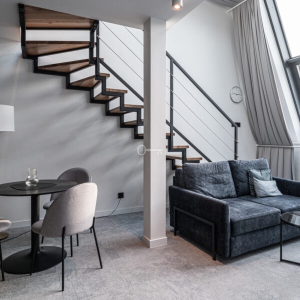 Wyjątkowy, prestiżowy apartament z antresolą o powierzchni 44,21 m², zlokalizowany przy ul. Podgórnej – zaledwie kilkadziesiąt metrów od Starego Rynku i Starego Browaru.