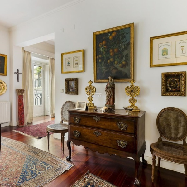 Uroczy dwupoziomowy apartament z 3 sypialniami w samym sercu Príncipe Real, z garażem i komórką lokatorską.