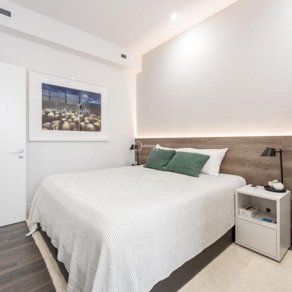 Apartament z w pełni wyposażoną łazienką jest przestronnym i prywatnym miejscem ze zintegrowanym miejscem do pracy. Druga sypialnia została przekształcona w biuro, tworząc spokojne i funkcjonalne środowisko do pracy zdalnej, zapewniając pełną prywatność parze pracującej w domu. Druga elegancko wyposażona łazienka uzupełnia wyposażenie apartamentu.