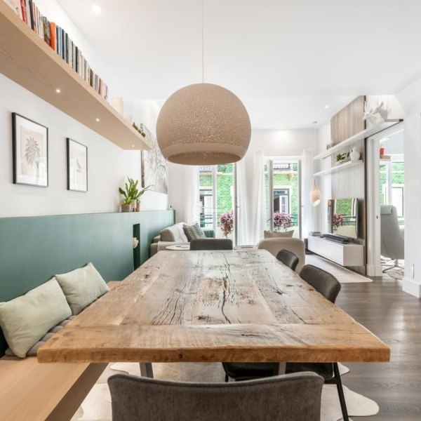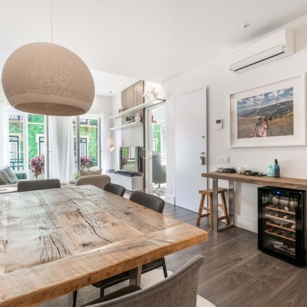 Ten wyrafinowany apartament z dwiema sypialniami o powierzchni 100 m², położony zaledwie kilka kroków od tętniącego życiem ogrodu Príncipe Real, łączy w sobie ponadczasowy urok architektury lat 30. z nowoczesnymi udogodnieniami współczesnego domu. Budynek o solidnej konstrukcji ma ściany zewnętrzne i podłogi wykonane ze zbrojonego betonu, a także wewnętrzne ściany z cegły, zapewniające trwałość, komfort i doskonałą izolację. Eleganckie schody, również wykonane ze zbrojonego betonu, mają stopnie i poręcze z naturalnego drewna, które zachowują oryginalny charakter nieruchomości, nadając jej odrobinę klasy i autentyczności.