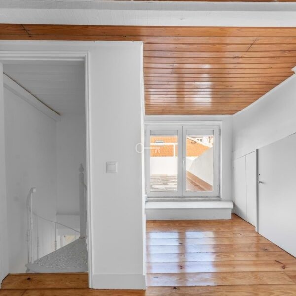With a private area of 67 sqm, the apartment offers a layout designed to maximize natural light and ensure a smooth flow between spaces. The main bedroom is warm and inviting, while the attic provides versatile use as an additional bedroom, home office, or walk-in wardrobe. The modern and functional kitchen opens onto the living area, creating a relaxed and sociable atmosphere. The pleasant terrace, measuring approximately 5 sqm, invites you to enjoy Lisbons mild climate and the unique views over the citys traditional rooftops.