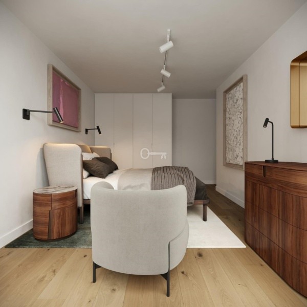 Mieszkanie jest częścią inwestycji składającej się tylko z trzech mieszkań, gdzie każda frakcja będzie miała zewnętrzne miejsce parkingowe, a budynek będzie obsługiwany przez windę.
