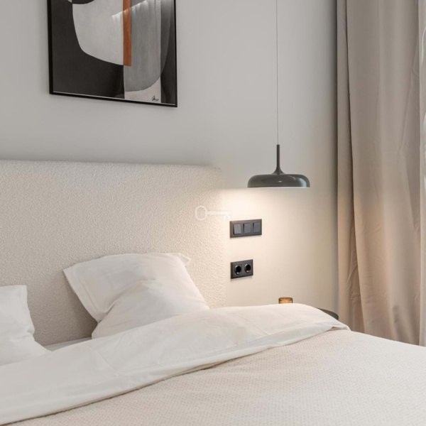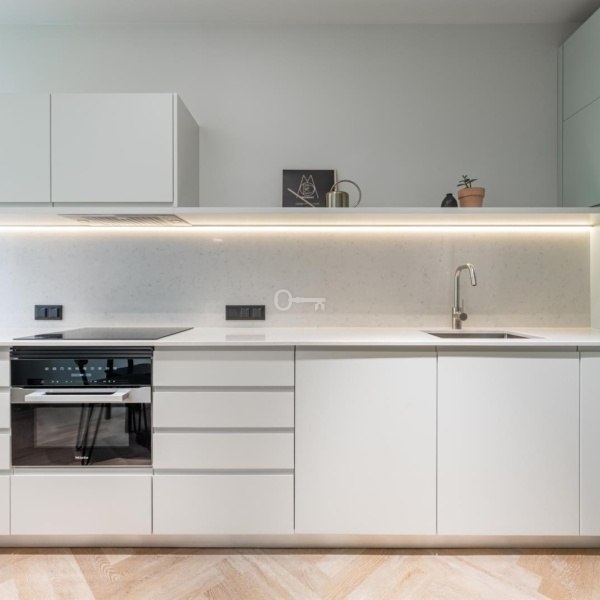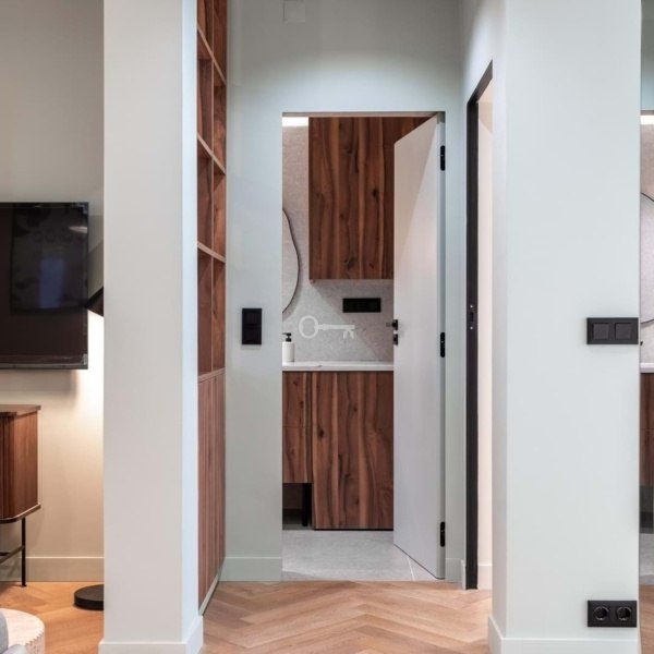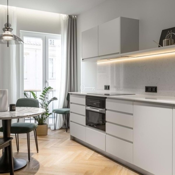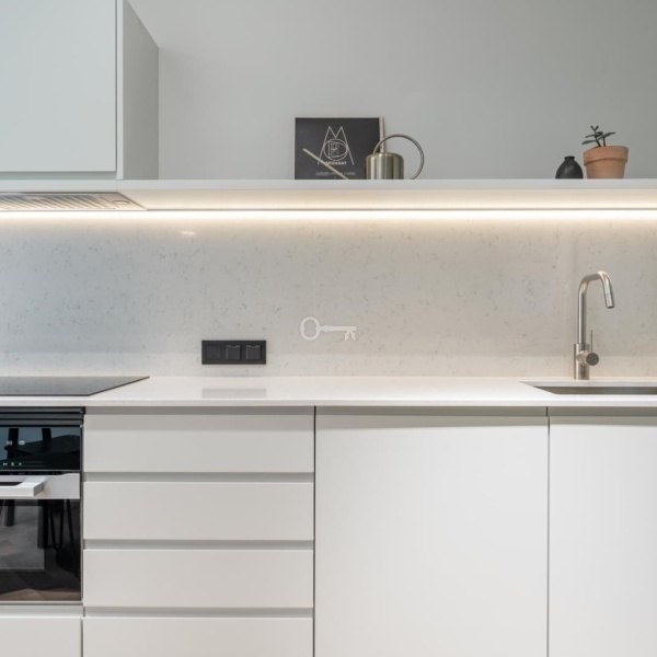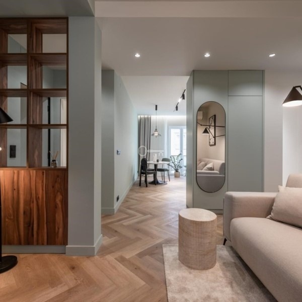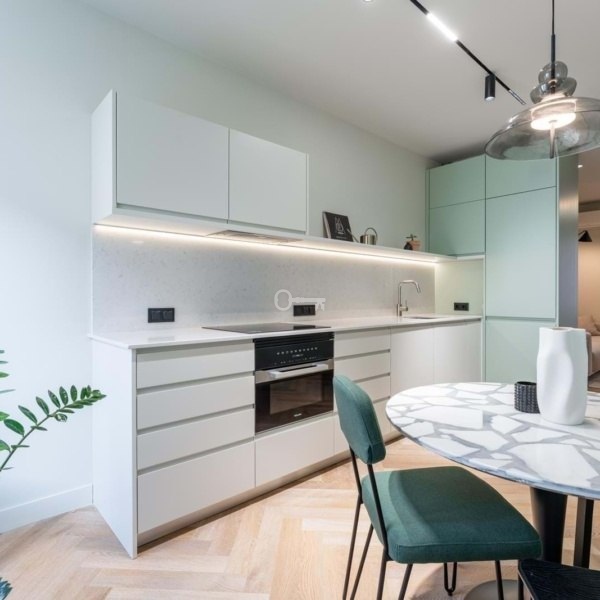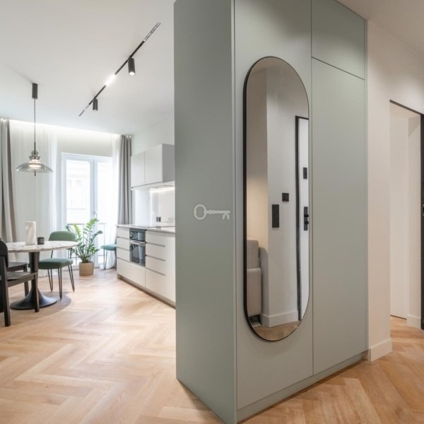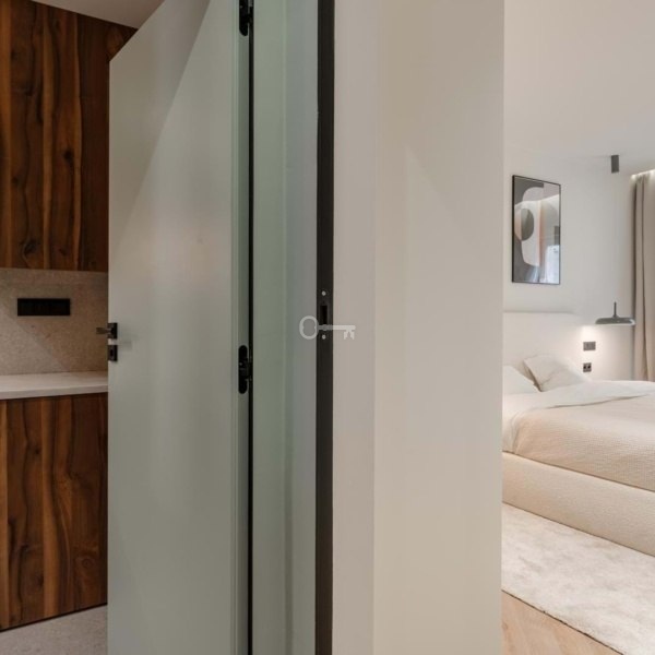 Apartament może pochwalić się wysokiej jakości sprzętem i wykończeniami, w tym urządzeniami Miele, klimatyzacją DAIKIN, 100-litrowym elektrycznym podgrzewaczem wody Bosch, trzema poziomami oświetlenia, rozwierno-uchylnymi oknami z podwójnymi szybami, wzmocnionymi drzwiami wejściowymi i systemem wideodomofonowym. Meble zostały wykonane na zamówienie, a obie sypialnie posiadają duże wbudowane szafy ze zintegrowanym oświetleniem.