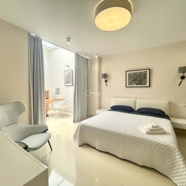 W apartamencie znajduje się sześć sypialni, każda z własną łazienką, co zapewnia duży komfort i prywatność. Jasny i przestronny salon wychodzi na duży taras z widokiem na ogród i basen. Kuchnia na otwartym planie jest w pełni wyposażona i obejmuje część śniadaniową oraz dużą jadalnię.
