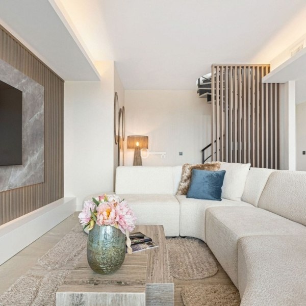 Witamy w Penthouse Lira, oszałamiającym przykładzie nowoczesnej architektury położonym w cenionej Urbanización Mirador del Rodeo w Nueva Andalucía w Marbelli. Ten dwupoziomowy penthouse, wyposażony w luksusowe udogodnienia, obejmuje 187 metrów kwadratowych powierzchni. Oferuje 108 metrów kwadratowych eleganckich wnętrz i rozległy taras o powierzchni 87 metrów kwadratowych, z którego mieszkańcy mogą podziwiać zapierające dech w piersiach widoki na góry. Zaprojektowany przez renomowanego architekta i zbudowany przez prestiżowych deweloperów, ten obiekt został całkowicie odnowiony na początku 2024 roku i obiecuje wysokiej jakości doświadczenie życiowe z najwyższej klasy osprzętem i wyposażeniem cenionych marek, takich jak Bosch.