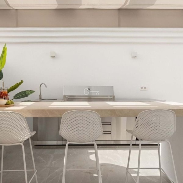 Dodatkowo penthouse posiada taras, który obejmuje solarium na dachu i mały basen, tworząc idealną oazę do relaksu lub przyjmowania gości. Grill na tarasie zachęca do spożywania posiłków na świeżym powietrzu pod gwiazdami, płynnie łącząc luksus z praktycznością.