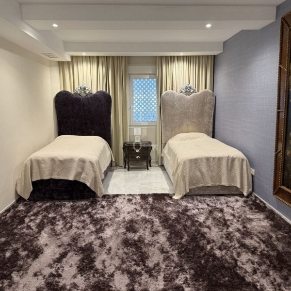 Obejmuje trzy przestronne, w pełni umeblowane sypialnie, każda z własną garderobą i łazienką, a także oddzielny pokój dla personelu lub pokój gościnny z prywatną łazienką, w pełni wyposażoną i przestronną kuchnię, pralnię, dwa duże podziemne miejsca parkingowe i pomieszczenie gospodarcze.