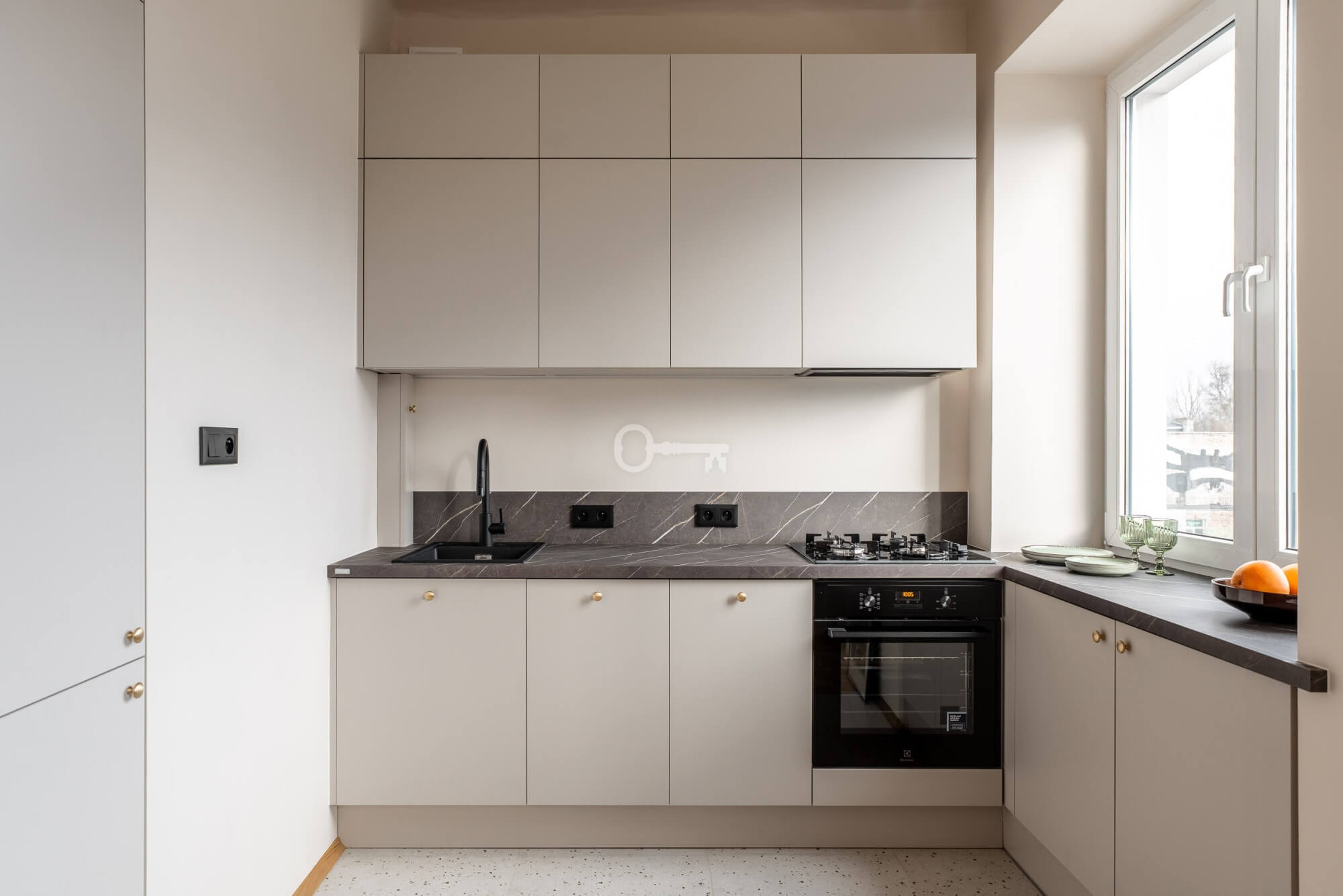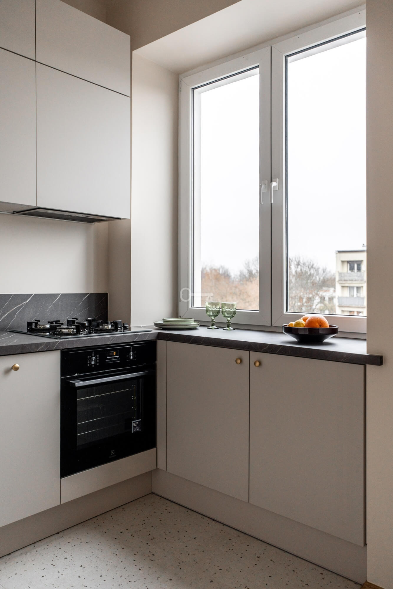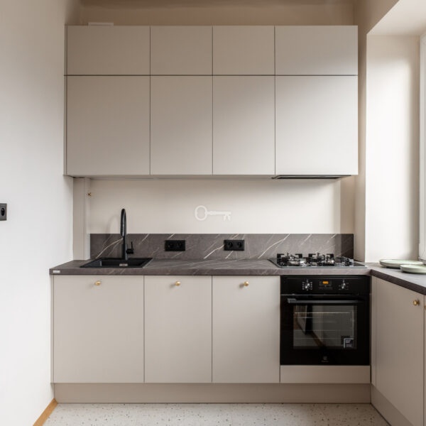 * kuchnia połączona z jednym z pokoi – nowoczesna i funkcjonalna,