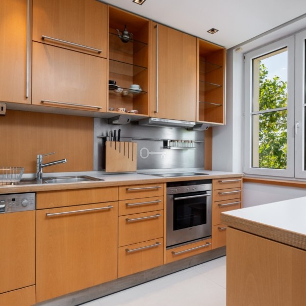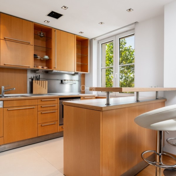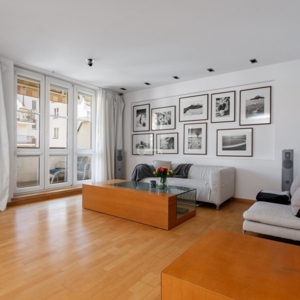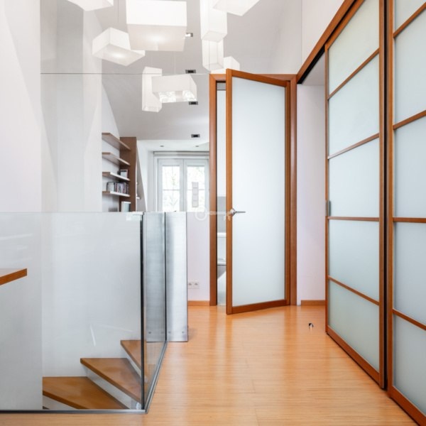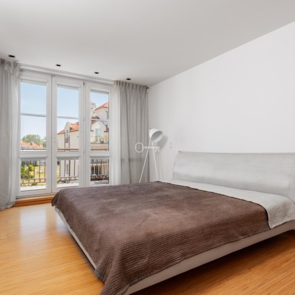 Apartament o powierzchni 125 m² na 2. piętrze wykończony przy użyciu wysokiej jakości materiałów. Wyjątkowy design łączy drewno i szkło, tworząc elegancką przestrzeń. Kuchnia wyposażona w pełną zabudowę meblową na wymiar oraz komplet sprzętów AGD. Jadalnia z pięknym sześcioosobowym stołem. Master bedroom z przechodnią garderobą, druga sypialnia z kompleksem szaf w zabudowie i rozkładaną kanapą. Poza sypialniami na górze także otwarta przestrzeń do pracy, nauki czy na domową czytelnie. Doskonale doświetlona naturalnie. Przestronna łazienka wyposażona w wannę, prysznic, toaletę i bidet. Wysokość ponad 3 metrów na drugim poziomie mieszkania. Dwa balkony z markizami i południowo – wschodnią ekspozycją.