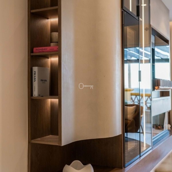 Apartament oferuje designerską kuchnię na otwartym planie wyposażoną w wysokiej jakości sprzęt AGD, system dźwiękowy Bang & Olufsen, kominek elektryczny, szafy wykonane na zamówienie i wiele innych wysokiej jakości detali.
