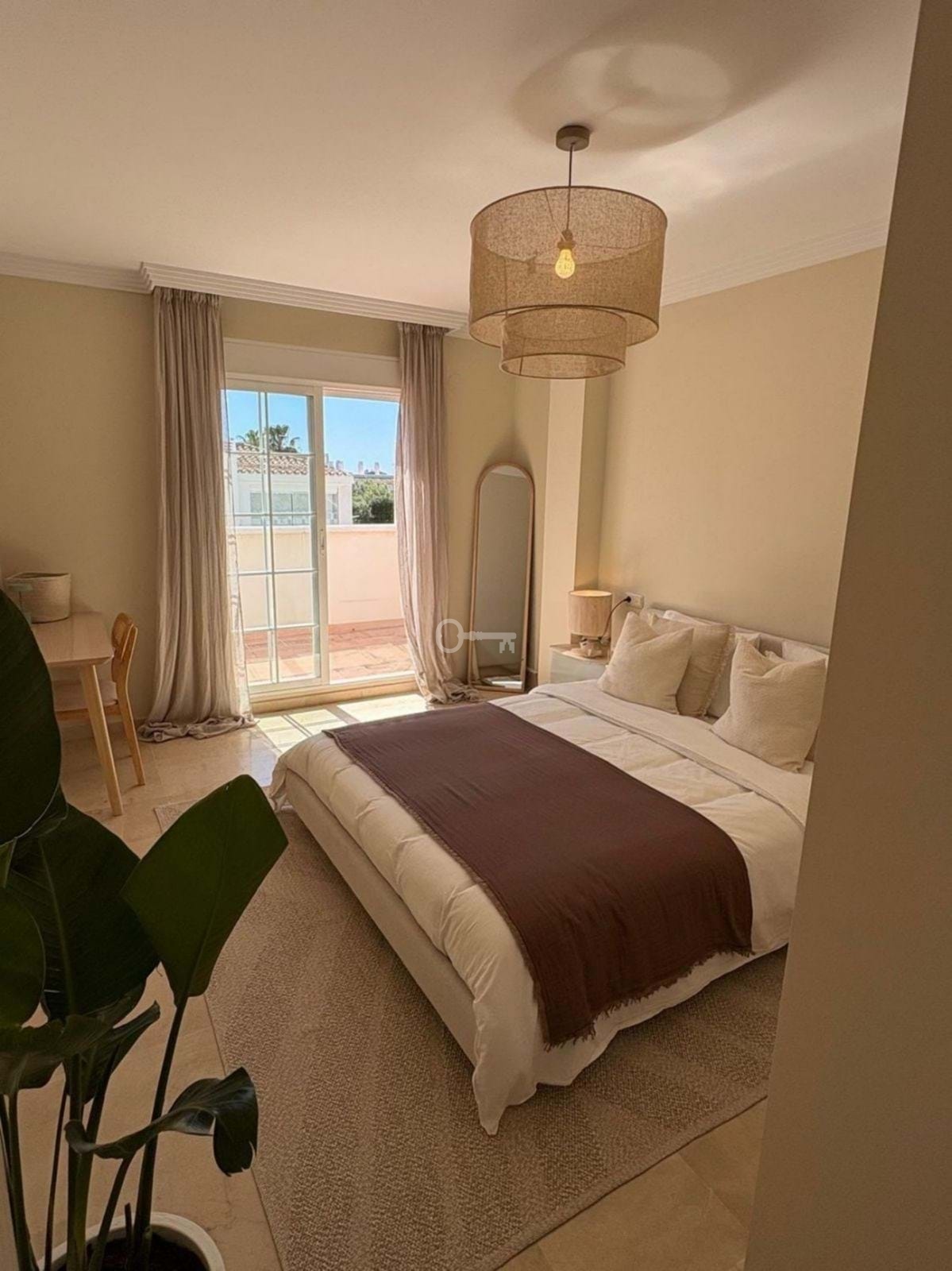 Penthouse obejmuje trzy przestronne sypialnie, dwie łazienki i duży salon z kominkiem. Kuchnia i jadalnia na otwartym planie tworzą przyjazną atmosferę, a trzy tarasy zapewniają dużo miejsca na zewnątrz, aby cieszyć się śródziemnomorskim klimatem. Nieruchomość obejmuje dwa miejsca parkingowe w garażu podziemnym, zapewniając wygodę i bezpieczeństwo. Lokalizacja jest bezkonkurencyjna, w odległości spaceru od najlepszych piaszczystych plaż Marbelli, a także licznych restauracji, barów i sklepów. Pole golfowe Río Real Golf Marbella oddalone jest o zaledwie 500 metrów, a najbliższa restauracja również znajduje się w odległości krótkiego spaceru.