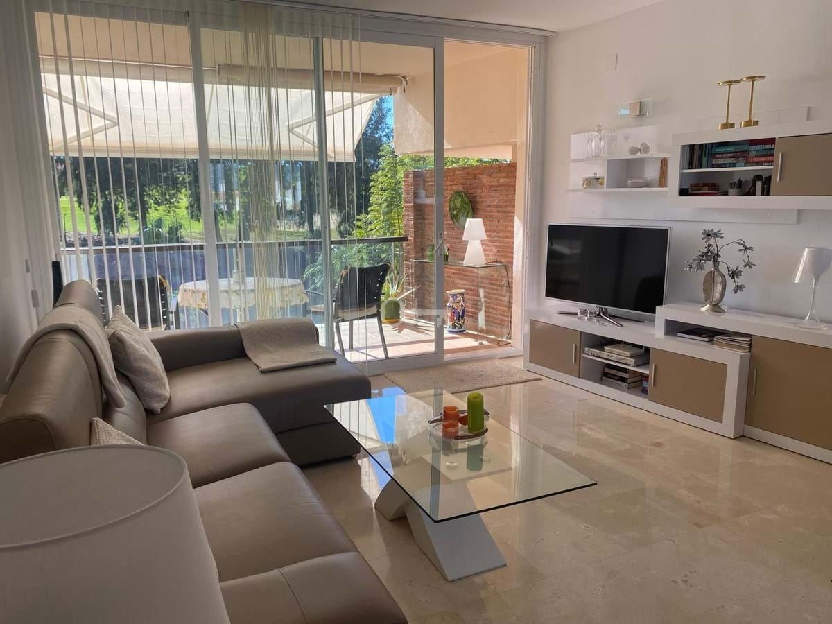 Taras od strony południowej oferuje piękne widoki na pięknie utrzymany ogród, basen i pole golfowe Miraflores.