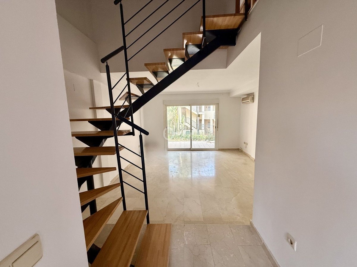 Niższy dupleks w Riviera del Sol o powierzchni 90 m², podzielony na 45 m² na parterze i 45 m² na piętrze. Na parterze znajduje się salon z jadalnią z wyjściem do prywatnego ogrodu, toaleta, pralnia i niewyposażona oddzielna kuchnia, z możliwością zintegrowania jej z salonem. Na piętrze znajdują się dwie sypialnie z wbudowanymi szafami, dwie pełne łazienki z oknami (jedna z wanną, a druga z prysznicem), dodatkowa wbudowana szafa w przedpokoju oraz taras z bocznym widokiem.