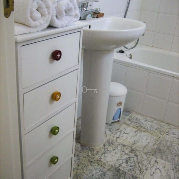 The main bedroom is spacious, features a fitted wardrobe, and enjoys a peaceful and pleasant atmosphere. A full bathroom serves the property.