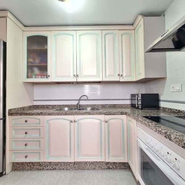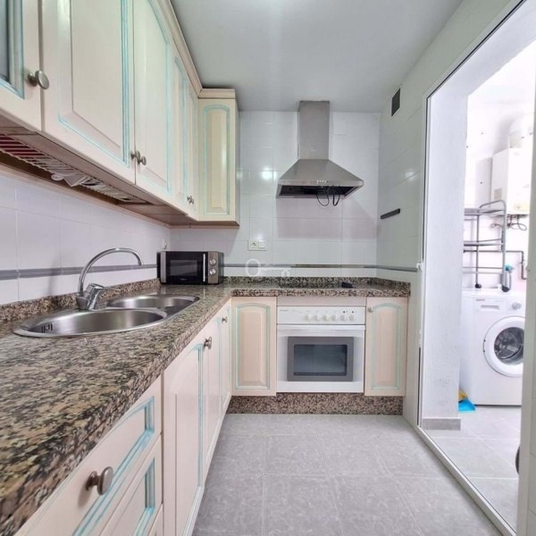 Po wejściu do nieruchomości znajduje się dobrze wyposażony salon i jadalnia (z klimatyzacją i ręcznymi żaluzjami). Stąd znajduje się ładny taras z balkonem Juliet, który zapewnia mnóstwo naturalnego światła w całym mieszkaniu. Wracając przez nieruchomość, masz dobrej wielkości kuchnię, w pełni wyposażoną, z oddzielnym pomieszczeniem gospodarczym, które można otworzyć, aby powiększyć kuchnię.