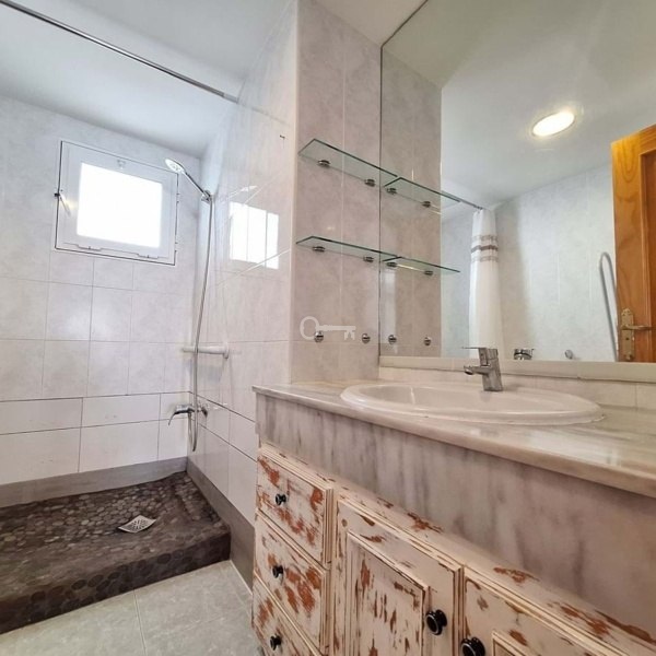 Jedna główna łazienka z dużym prysznicem i znowu dużo naturalnego światła.