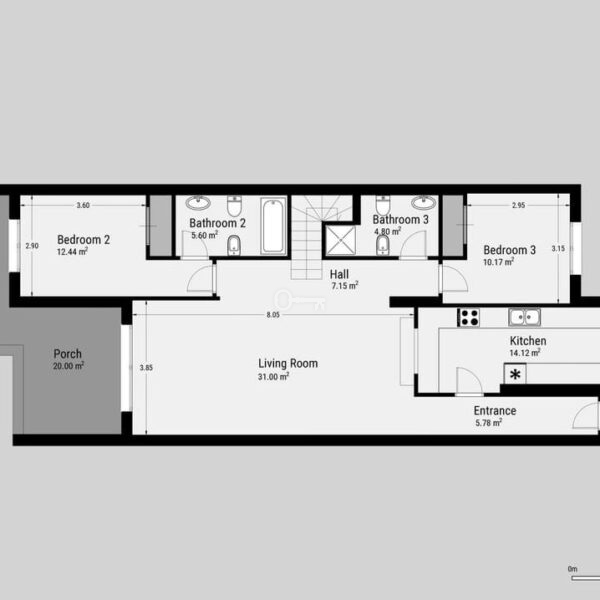 Zbudowany na dwóch poziomach penthouse wita na głównym piętrze holem wejściowym, przestronnym salonem i jadalnią prowadzącą na taras od strony południowo-wschodniej, w pełni wyposażoną kuchnią z częścią gospodarczą, dwiema sypialniami i dwiema łazienkami. Na piętrze imponujący apartament główny oferuje najwyższą prywatność i bezpośredni dostęp do solarium, tworząc płynny styl życia wewnątrz i na zewnątrz.