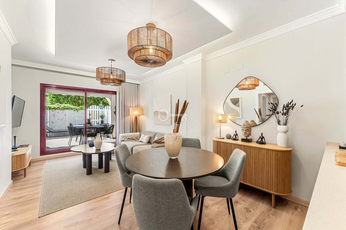 Sylish parterowy apartament na sprzedaż, który doskonale łączy komfort z nadmorskim urokiem. Położony zaledwie 150 metrów od plaży w dobrze ugruntowanej urbanizacji Noray, ten dom jest przeznaczony zarówno do całorocznego życia, jak i relaksujących wypadów nad morze. Jego orientacja na zachód zapewnia naturalne popołudniowe światło i spektakularne zachody słońca, a prywatny taras zapewnia bezpośredni dostęp do wspólnego ogrodu, tworząc płynne połączenie między życiem wewnątrz i na zewnątrz.