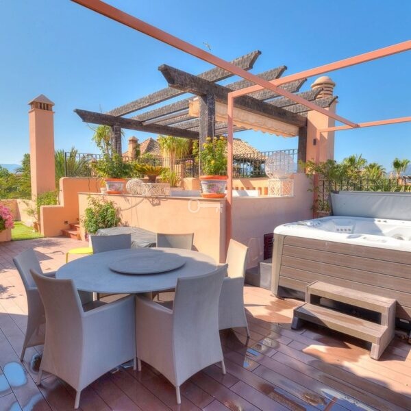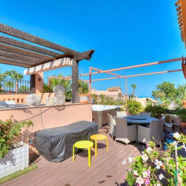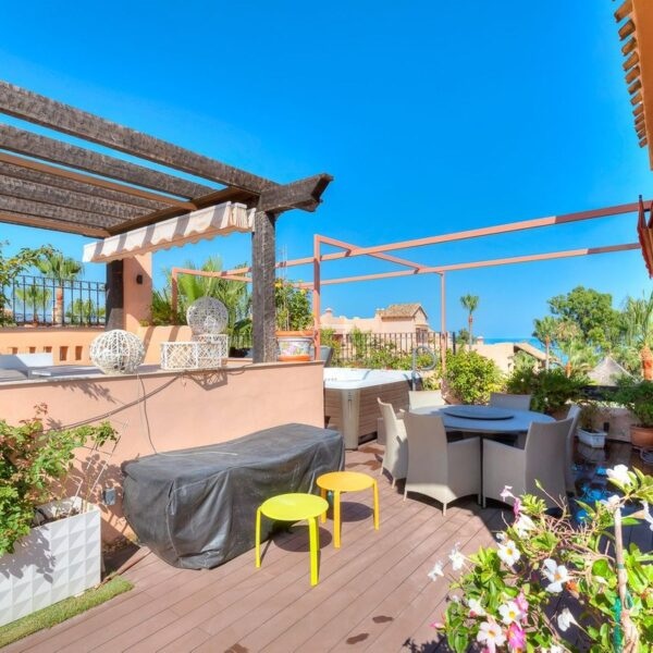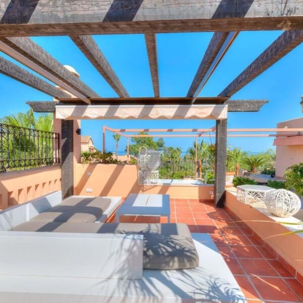 Ten zapierający dech w piersiach odnowiony dwupoziomowy penthouse oferuje oszałamiający wypoczynek przy plaży, zaledwie kilka kroków od wspaniałej promenady i plaż San Pedro de Alcántara. Rezydencja jest skąpana w naturalnym świetle słonecznym przez cały dzień i oferuje hipnotyzujące widoki na bujne ogrody komunalne i Morze Śródziemne.