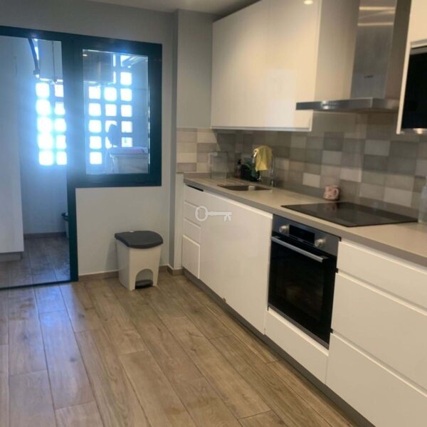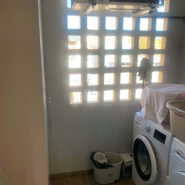 A beautifully renovated modern and bright kitchen comes fully equipped with all modern appliances with soft closing wall and base storage cupboards and drawer units which are of an Italian design and finished to a high-end quality, complete with contrasting worktop surfaces. Adjacent to the kitchen, a glass door leads onto a very useful utility room which houses the mains gas boiler, air con machine, washing machine, and more storage cupboards with worktop surfaces.