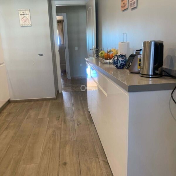 An elevator takes you to the 3rd floor and, on entering the hallway, there is a built in large useful storage cupboard. Double doors lead into the lounge and there is a separate kitchen utility room. The lounge is large and bright due to its southerly aspect, and double fronted double glazed glass doors open onto a fabulous spacious terrace which has adequate room for dining alfresco, relaxing and sunbathing, with stunning sea views.