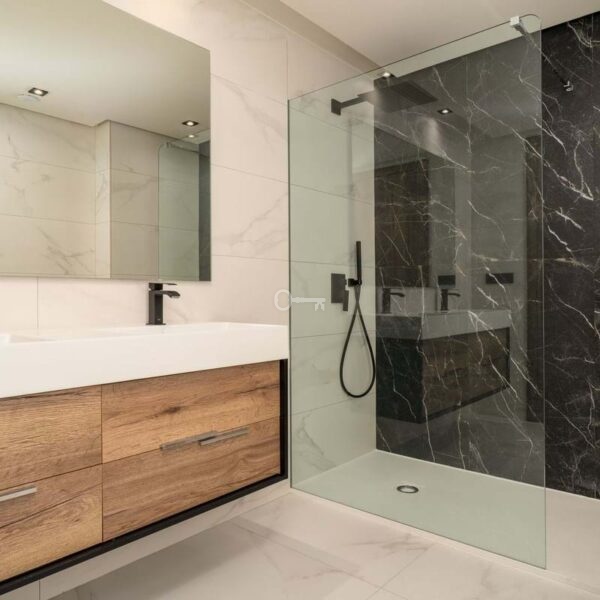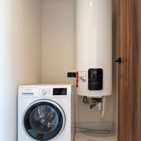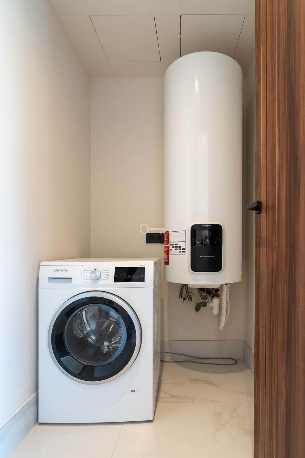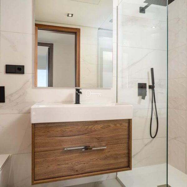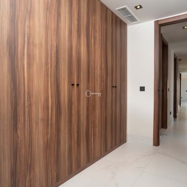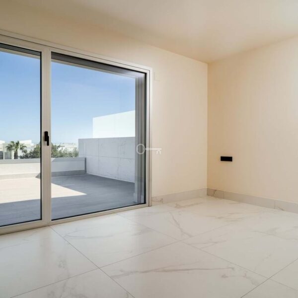 Flooded with natural light, the home features a contemporary open-plan layout, with a fully integrated kitchen flowing seamlessly into the living area and out onto the large terrace perfect for enjoying the sun throughout the day. Designed with a modern total living concept, the property maximises every space, with expansive windows that create a seamless connection between indoor and outdoor living.