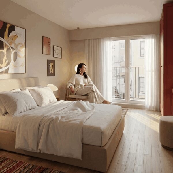 Each apartment has been conceived as a space for comfortable and functional living, with well-designed layouts, good natural light and, in many units, a strong connection between indoor and outdoor areas. The available typologies range from T1 to T2 Duplex apartments, accommodating different lifestyles from first-time urban homeowners to those seeking greater comfort, spatial fluidity and private outdoor spaces within the city.