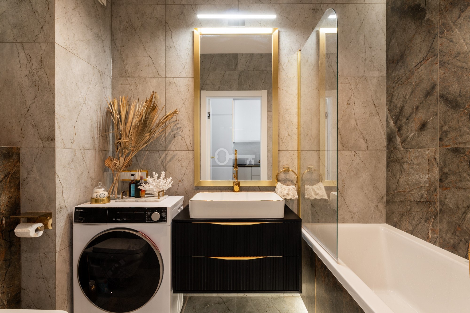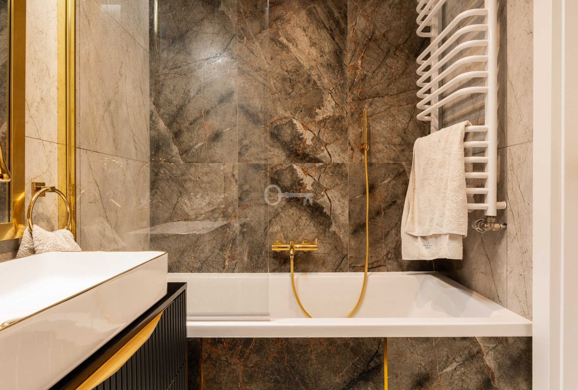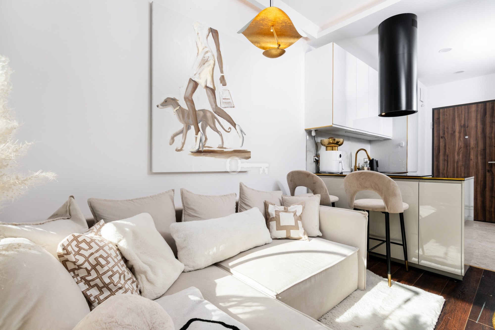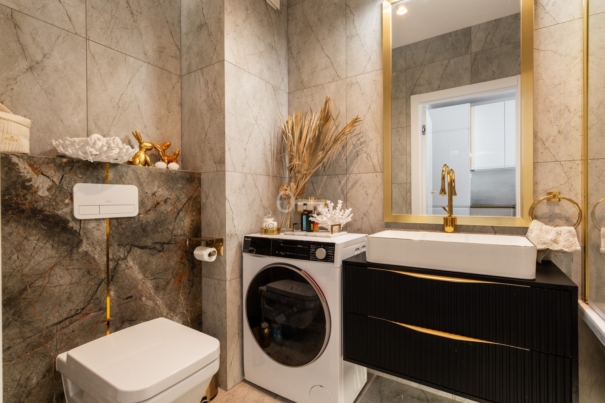 Mieszkanie zostało wykończone w wysokim standardzie, posiada klimatyzację. Jasne i przytulne wnętrze zapewnia komfort codziennego życia. Nowoczesne rozwiązania technologiczne oraz wysokiej jakości materiały gwarantują trwałość i estetykę. Ponadpodstawowa wysokość pomieszczeń zapewnia poczucie przestrzeni.