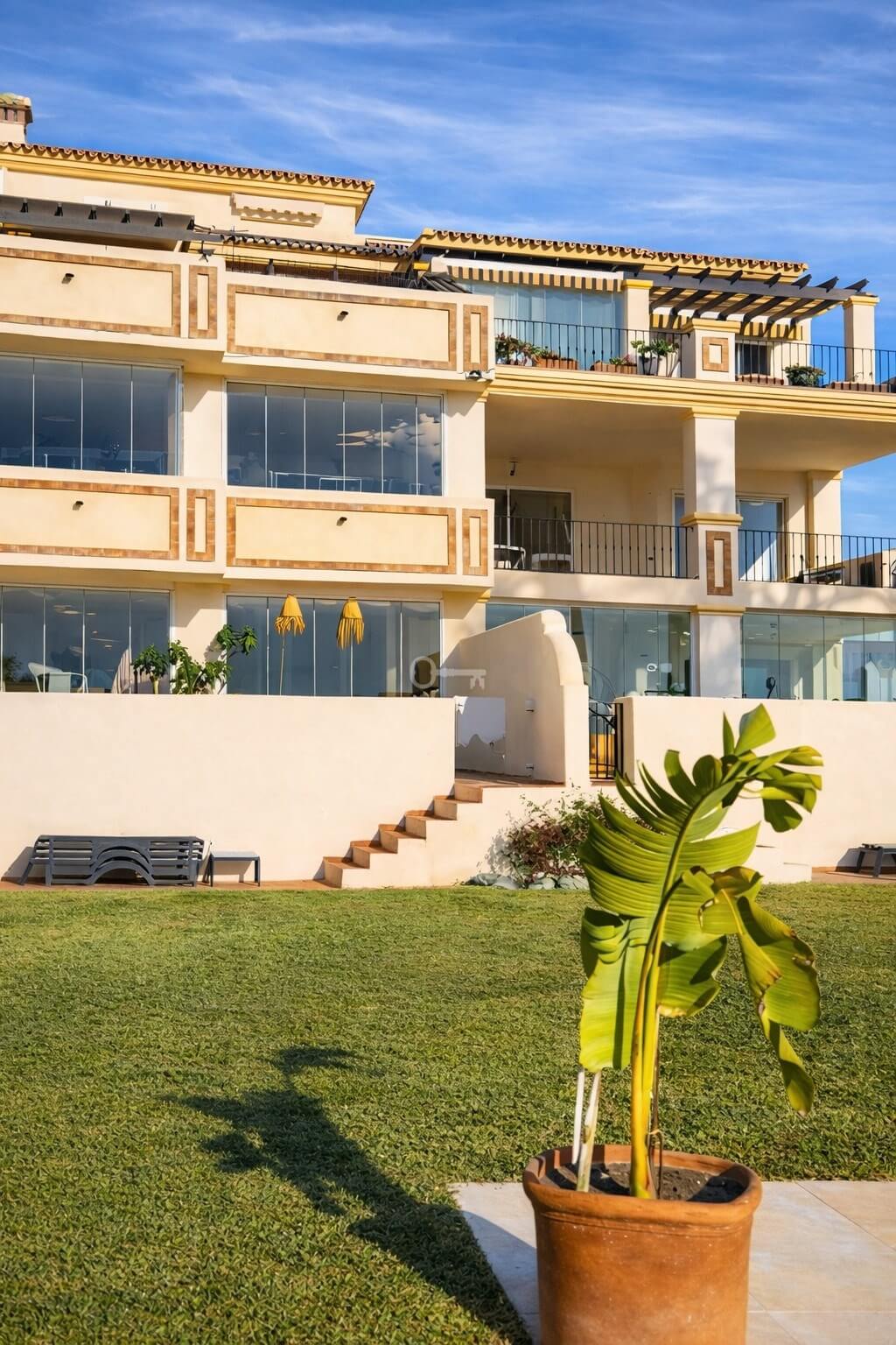 This exceptional elevated ground floor corner apartment for sale in Estepona East offers panoramic Mediterranean sea views, privacy and premium outdoor living in one of the most sought-after areas of the Costa del Sol. Located within a boutique development of only 12 units, this property combines Mediterranean architecture with modern comfort, making it ideal as a holiday home, permanent residence or high-potential investment property in Estepona.