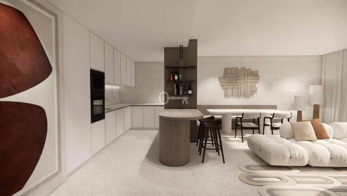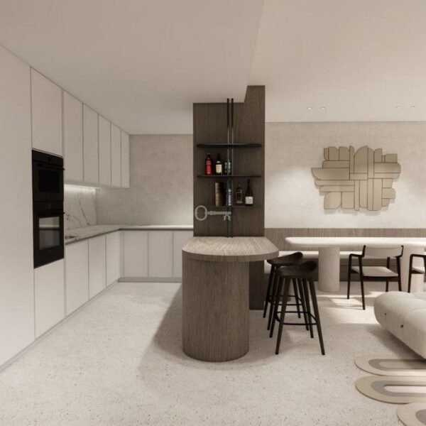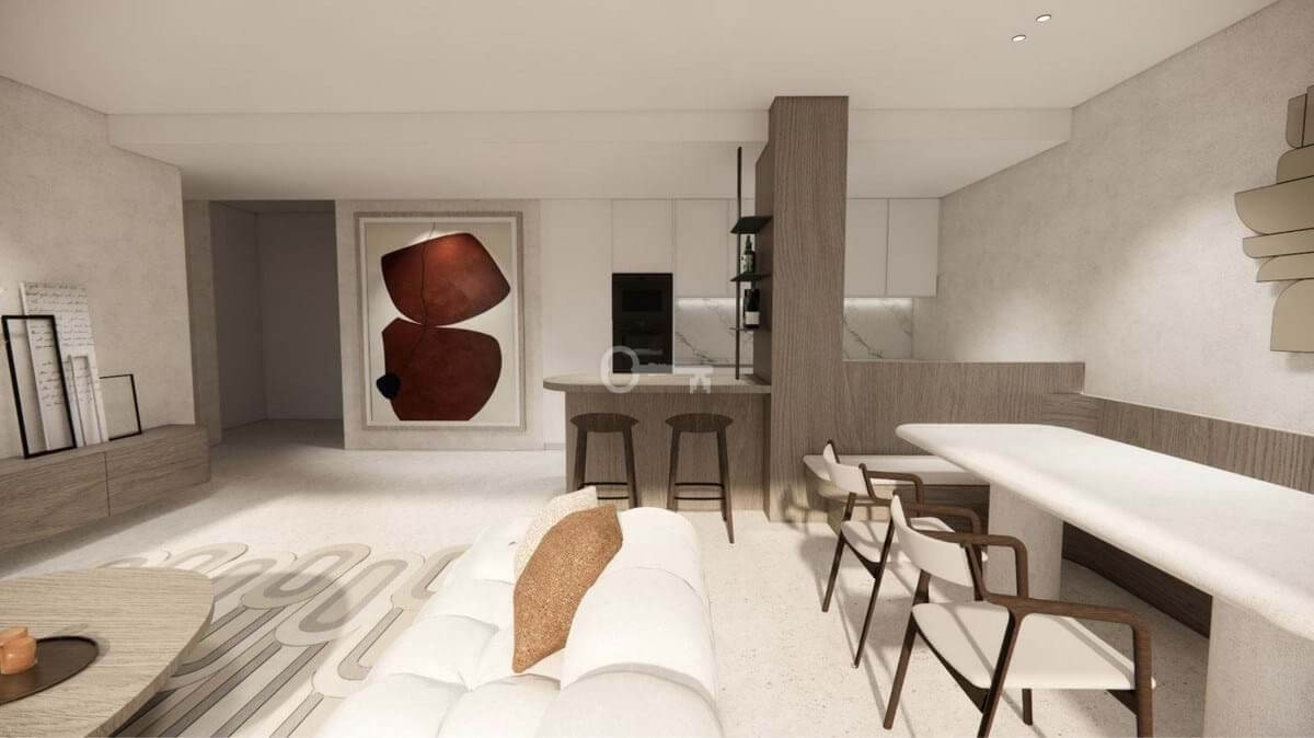 A professional interior designer has created a refined design proposal for the living area, offering buyers a clear vision of how the space can be styled into an elegant and sophisticated home.
