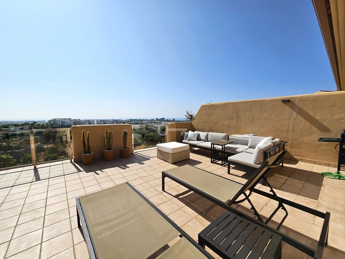 Ten przestronny i jasny penthouse z 2 sypialniami znajduje się w dzielnicy La Resina w Esteponie, w obrębie pola golfowego. Położony na eleganckim zamkniętym osiedlu z 2 basenami i pięknymi tropikalnymi terenami, apartament ten oferuje doskonałe walory, spokój, widoki na morze, komfort i styl. Nieruchomość naprawdę wyróżnia się niesamowitym odkrytym tarasem z pięknym panoramicznym widokiem na wybrzeże Morza Śródziemnego, góry i pole golfowe.