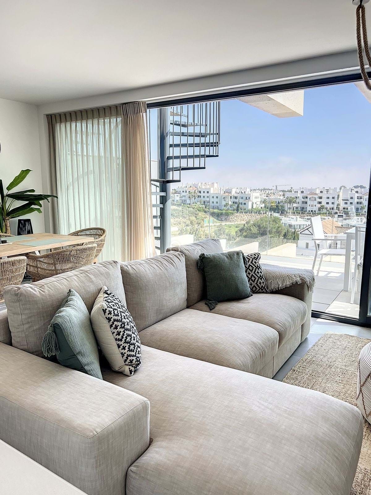 Zupełnie nowy, współczesny, przestronny narożny penthouse z solarium. W 100% zorientowany na południe, zapewniający mnóstwo słońca przez cały dzień z jasnym światłem wewnątrz, a do tego fantastyczne widoki na otwarte morze, piękne góry i Gibraltar!