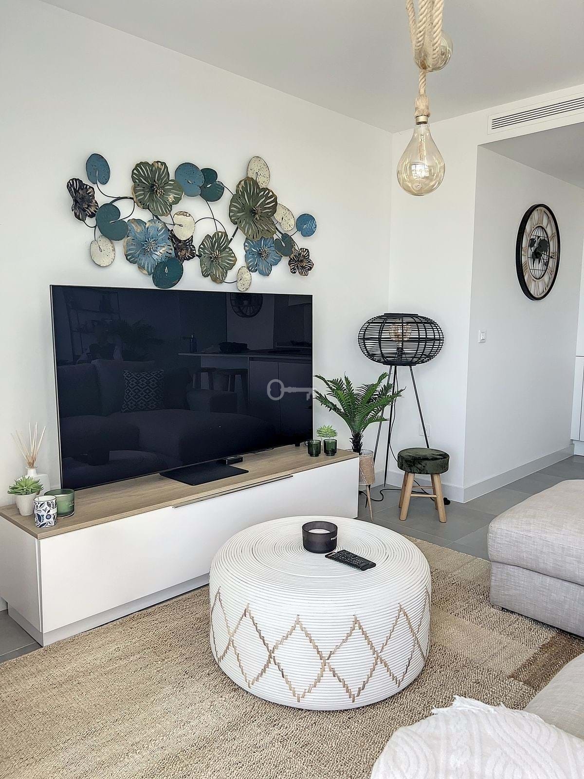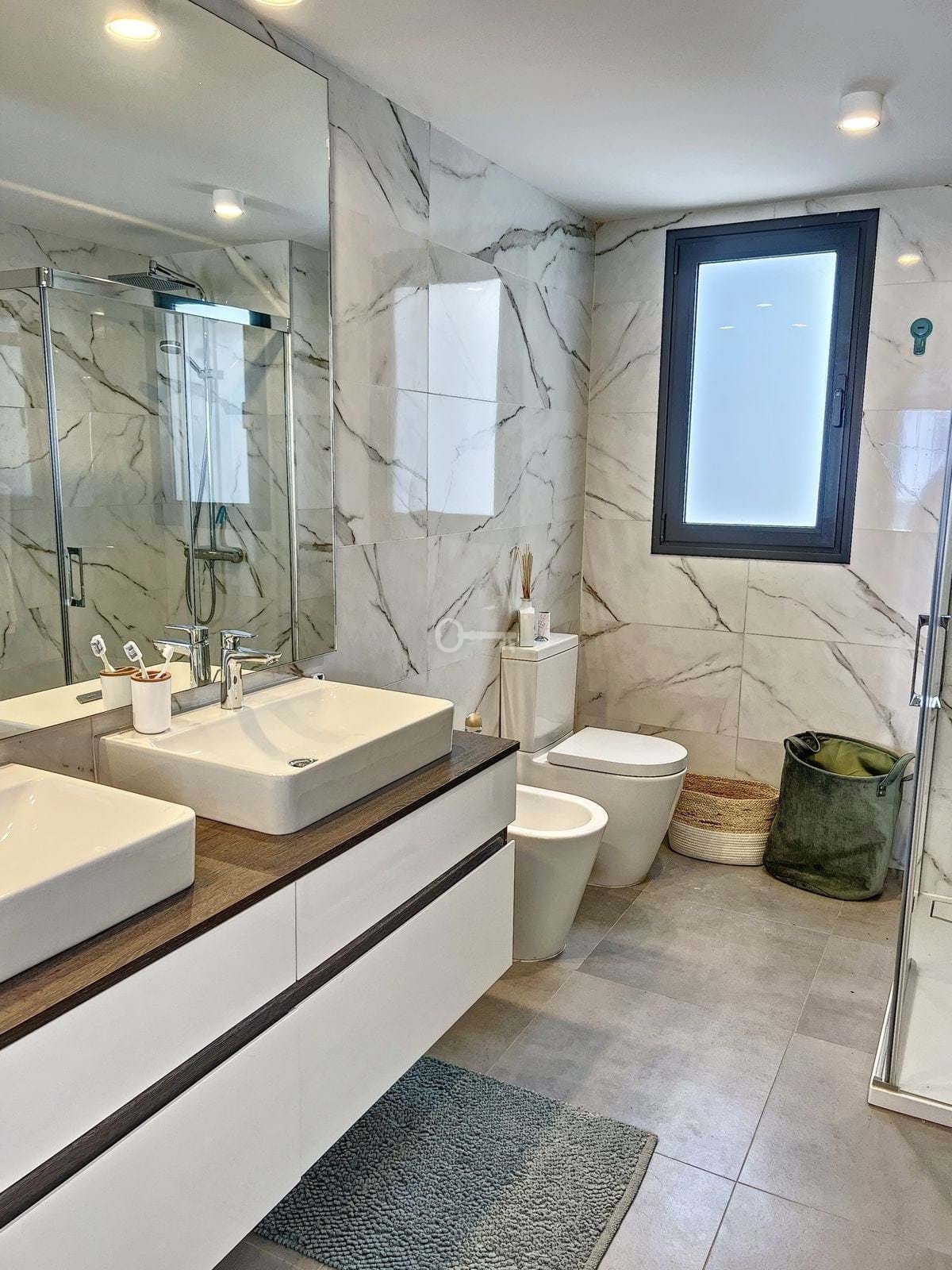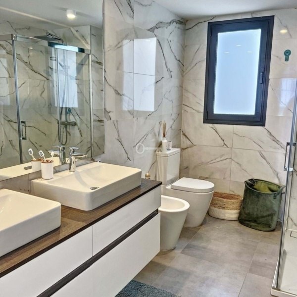 Ten piękny narożny penthouse oferuje kuchnię na otwartym planie i szeroki salon z dużymi płytkami ceramicznymi w całym mieszkaniu. 3 sypialnie – 2 łazienki. Salon i główna sypialnia z łazienką prowadzą na duży taras.