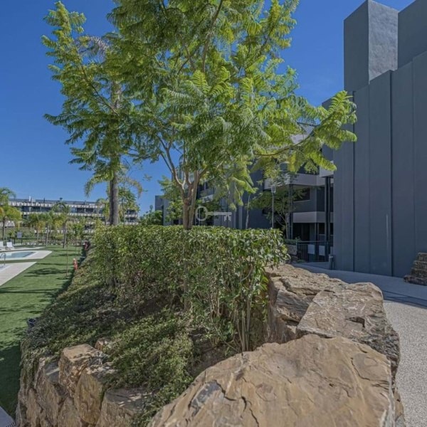 Ten apartament szczyci się eleganckim, nowoczesnym stylem, składającym się z trzech sypialni, dwóch łazienek, salonu z otwartą kuchnią i dużego tarasu o powierzchni 33 m2 oraz prywatnego ogrodu o powierzchni 63 m2.