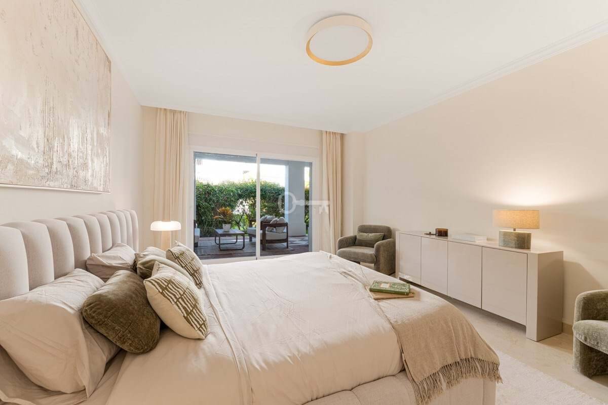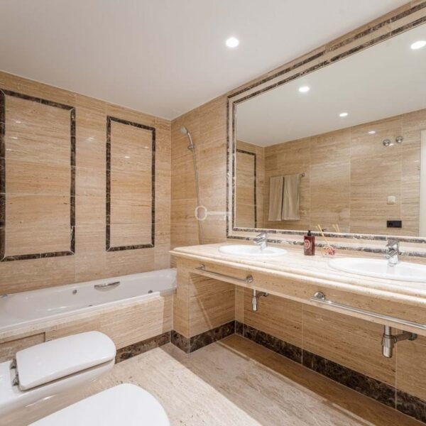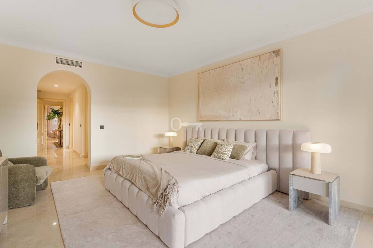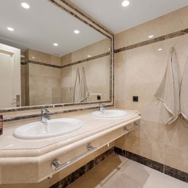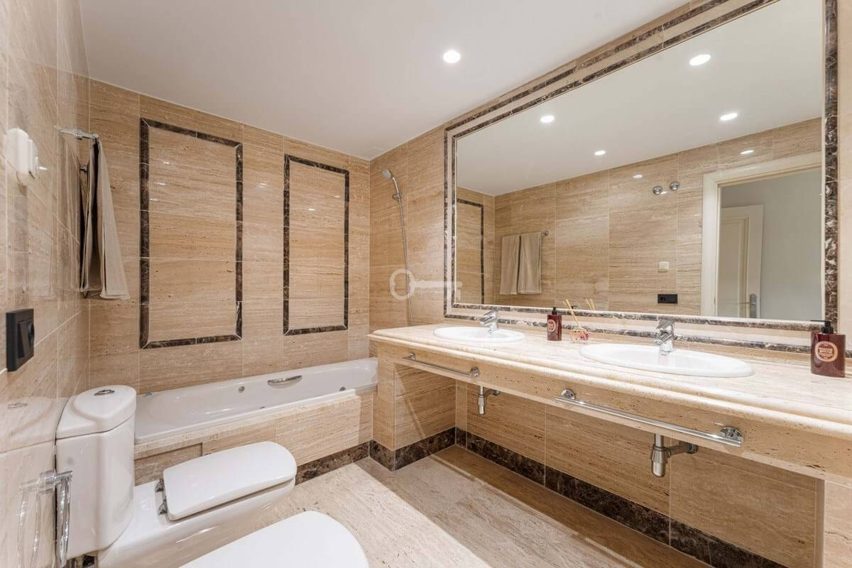 Nieruchomość obejmuje trzy sypialnie, dwie z nich z łazienkami i trzecią łazienkę znajdującą się obok trzeciej sypialni, która służy zarówno prywatnie, jak i dla reszty mieszkania. Główna sypialnia wyróżnia się dużym rozmiarem, garderobą i bezpośrednim dostępem do tarasu. Pozostałe sypialnie utrzymują ten sam poziom jakości, z wbudowanymi szafami, dużą ilością naturalnego światła i poczuciem prywatności, dzięki czemu są odpowiednie dla członków rodziny lub gości.