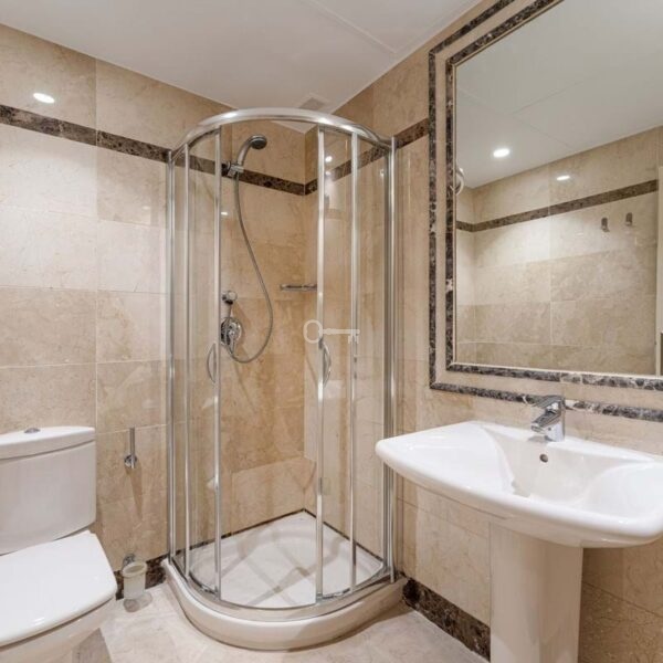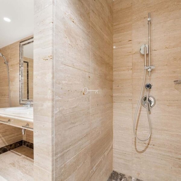 W całym wnętrzu połączenie marmurowych podłóg, drewnianych wykończeń i delikatnych neutralnych odcieni tworzy spokojną, współczesną atmosferę. Praktyczne funkcje, takie jak elektryczne żaluzje, łazienki z ogrzewaniem podłogowym i klimatyzacja, przyczyniają się do codziennego komfortu, zapewniając, że mieszkanie pozostaje przyjemne o każdej porze roku. Ponadto nieruchomość posiada prywatny parking podziemny i komórkę lokatorską,