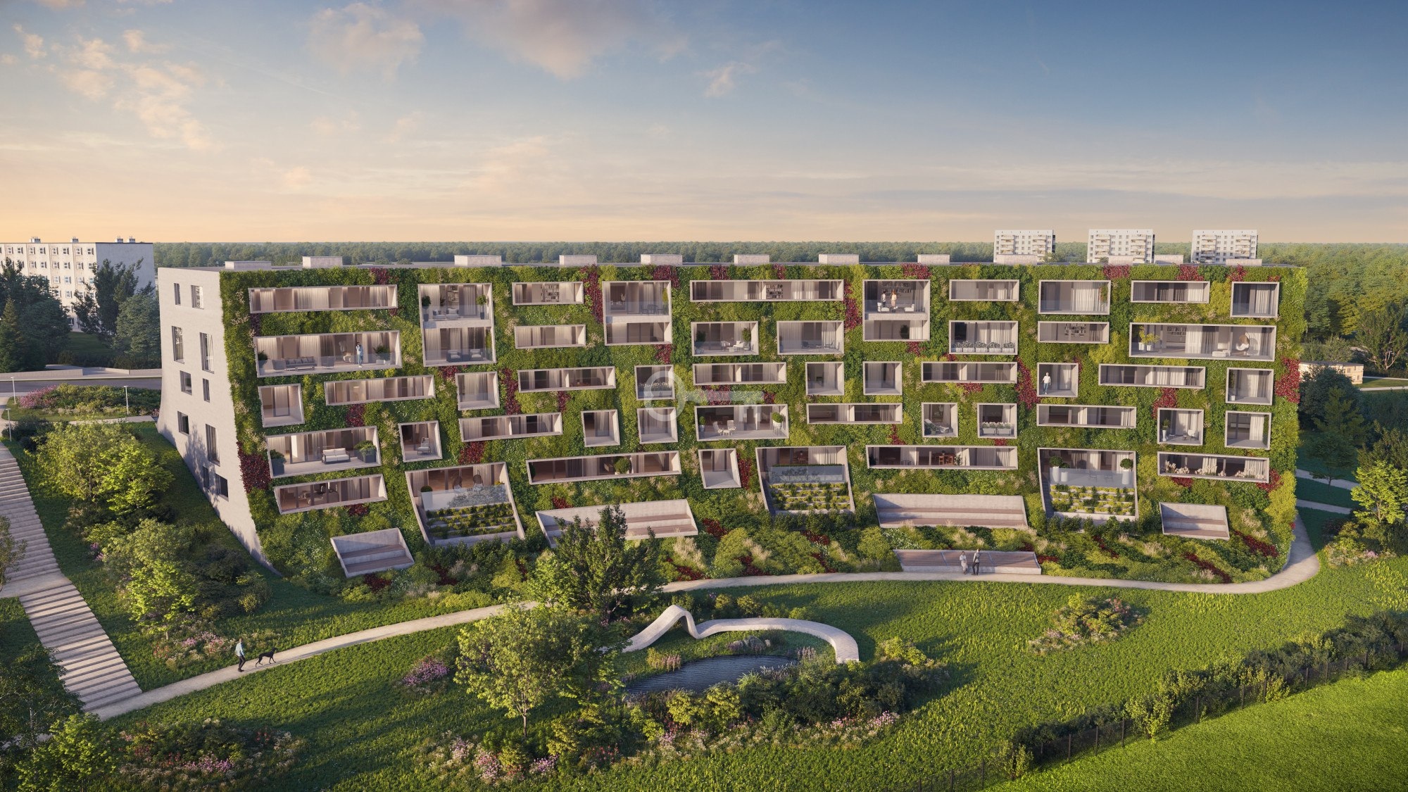 Aura to pionierska inwestycja mieszkaniowa w Poznaniu, której fasadę tworzy ponad 140 tysięcy żywych roślin. Zielona elewacja to nie tylko element wizualny, lecz także praktyczne rozwiązanie poprawiające mikroklimat i jakość powietrza. Budynek posiada autonomiczny system nawadniania, a na dachu umieszczono panele solarne zasilające części wspólne, wpisując projekt w ideę ekologicznego luksusu.