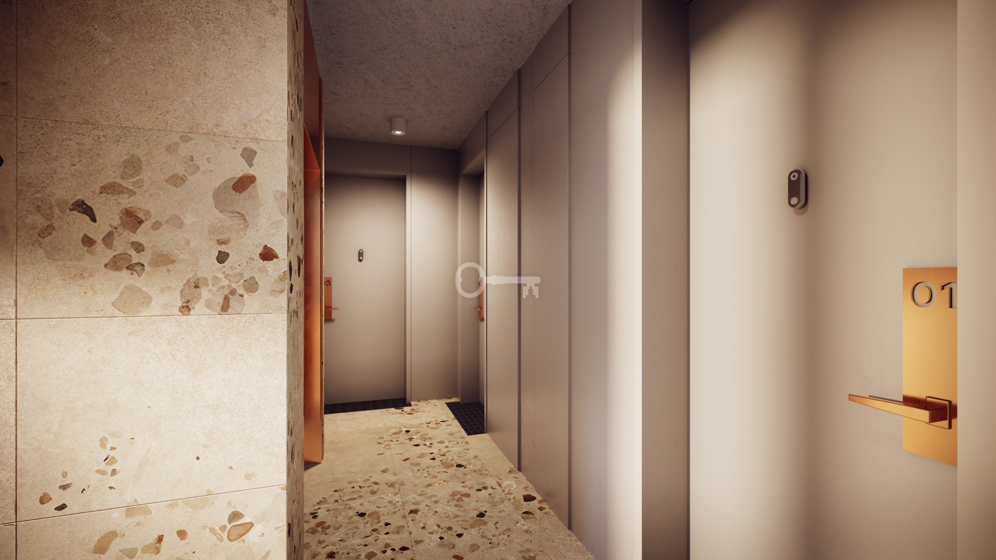Części wspólne zaprojektowane zostały przez studio Mode:lina/Modelina z dbałością o każdy detal – naturalne materiały (drewno, kamień, szkliwo) i stonowana paleta barw podkreślają luksusowy charakter inwestycji. Dodatkowo przestrzenie wspólne zostały wzbogacone o sztukę – w lobby mieszkańców wita autorska płaskorzeźba ceramiczna Alicji Białej, co nadaje całemu budynkowi wyjątkowy, artystyczny klimat.
