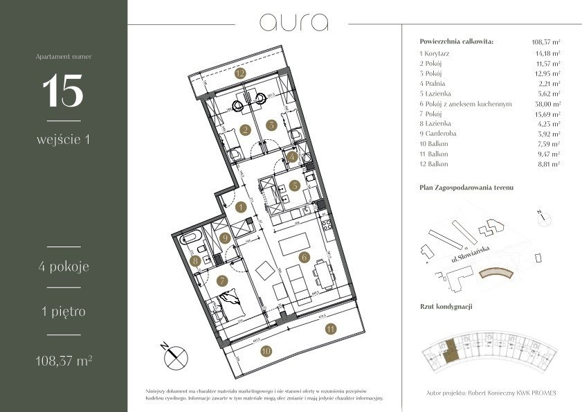 Przedstawiamy Apartament nr 15 w prestiżowej inwestycji Aura przy ul. Słowiańskiej w Poznaniu – projekcie autorstwa Roberta Koniecznego (KWK Promes). To unikalne połączenie najwyższej klasy architektury, sztuki i ekologii. 4‑pokojowy apartament