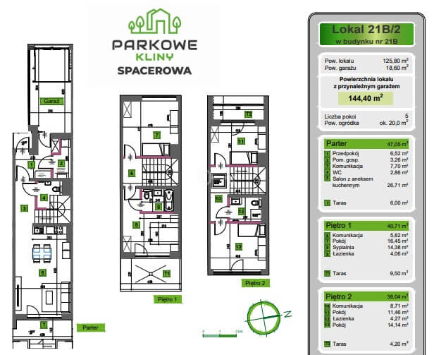 Domy o powierzchniach od 142 do 146 m², rozmieszczone na trzech kondygnacjach, oferują: